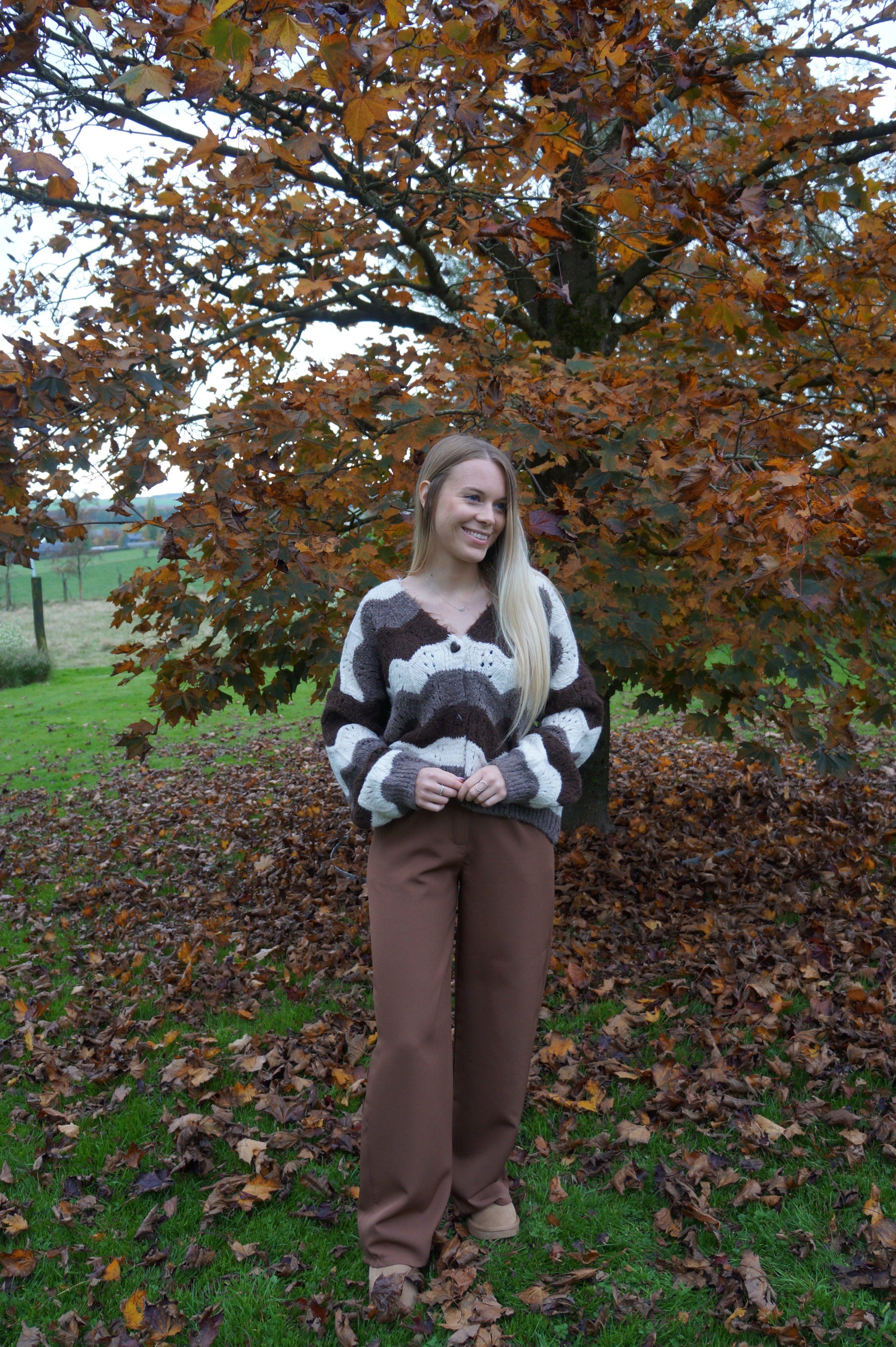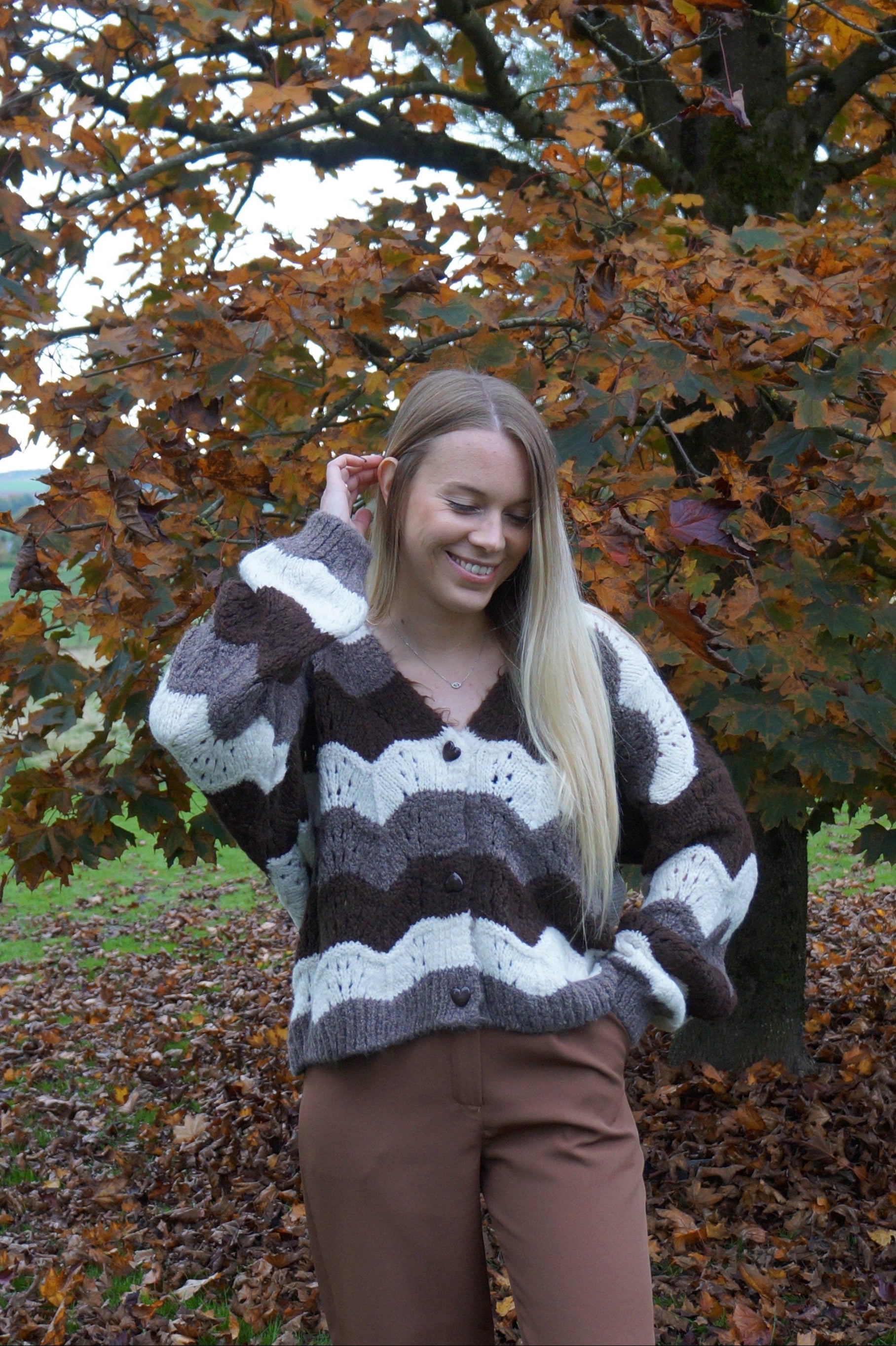 - Nos conseils Nosinya → les gros gilets, une tendance mode qui revient chaque année et qui est très confortable à porter ! Ce gilet tout doux dans les tons marrons et chocolat (très tendances cette année) vous tiendra bien au chaud cet hiver ♡
