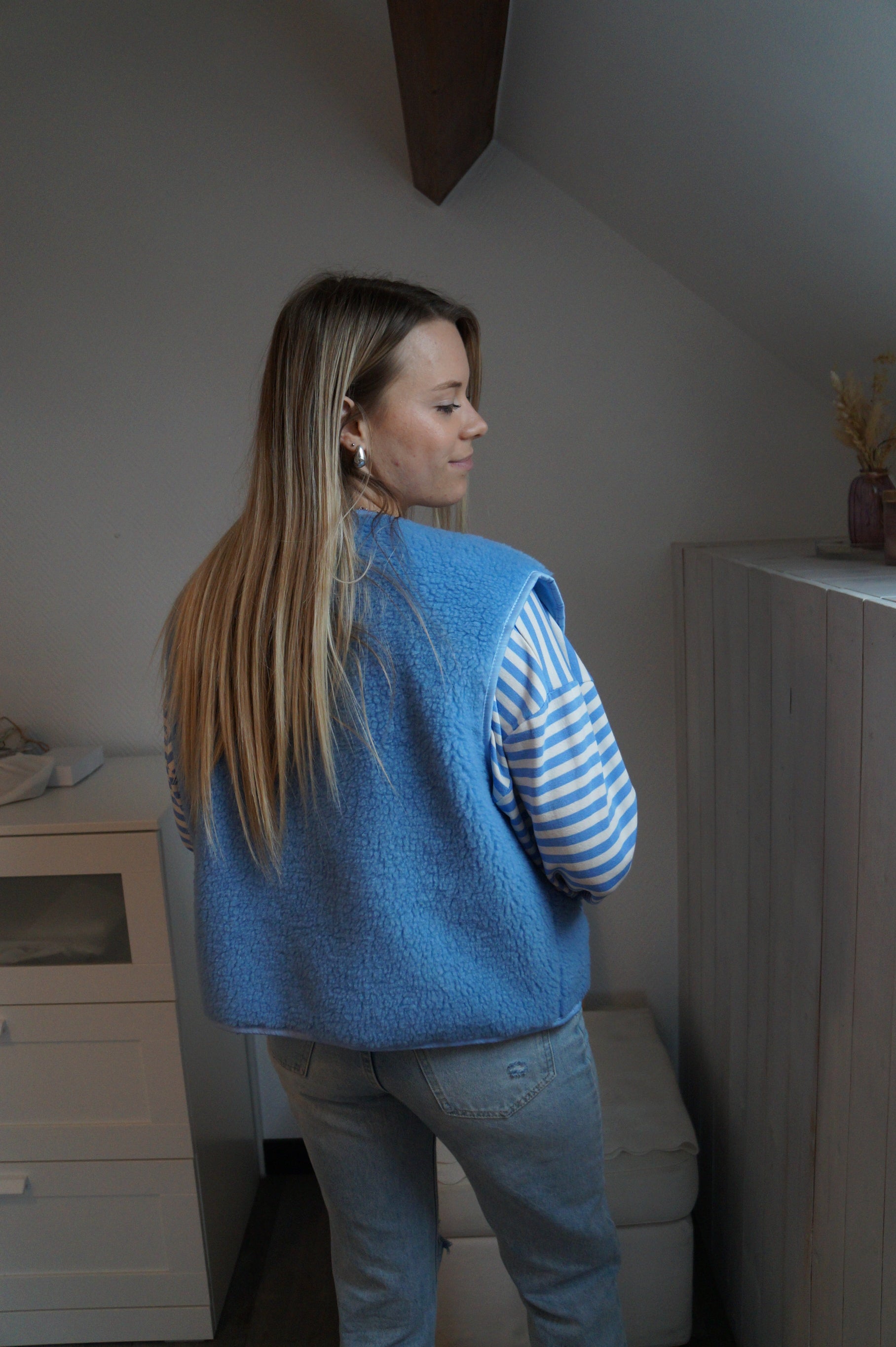 - Nos conseils Nosinya → les gilets sans manches effet moumoute sont très tendances et d'autant plus en couleur bleu peps comme notre Gilet Neela. C'est une pièce que vous allez adorer porter pour apporter une touche de couleur à vos tenues ♡