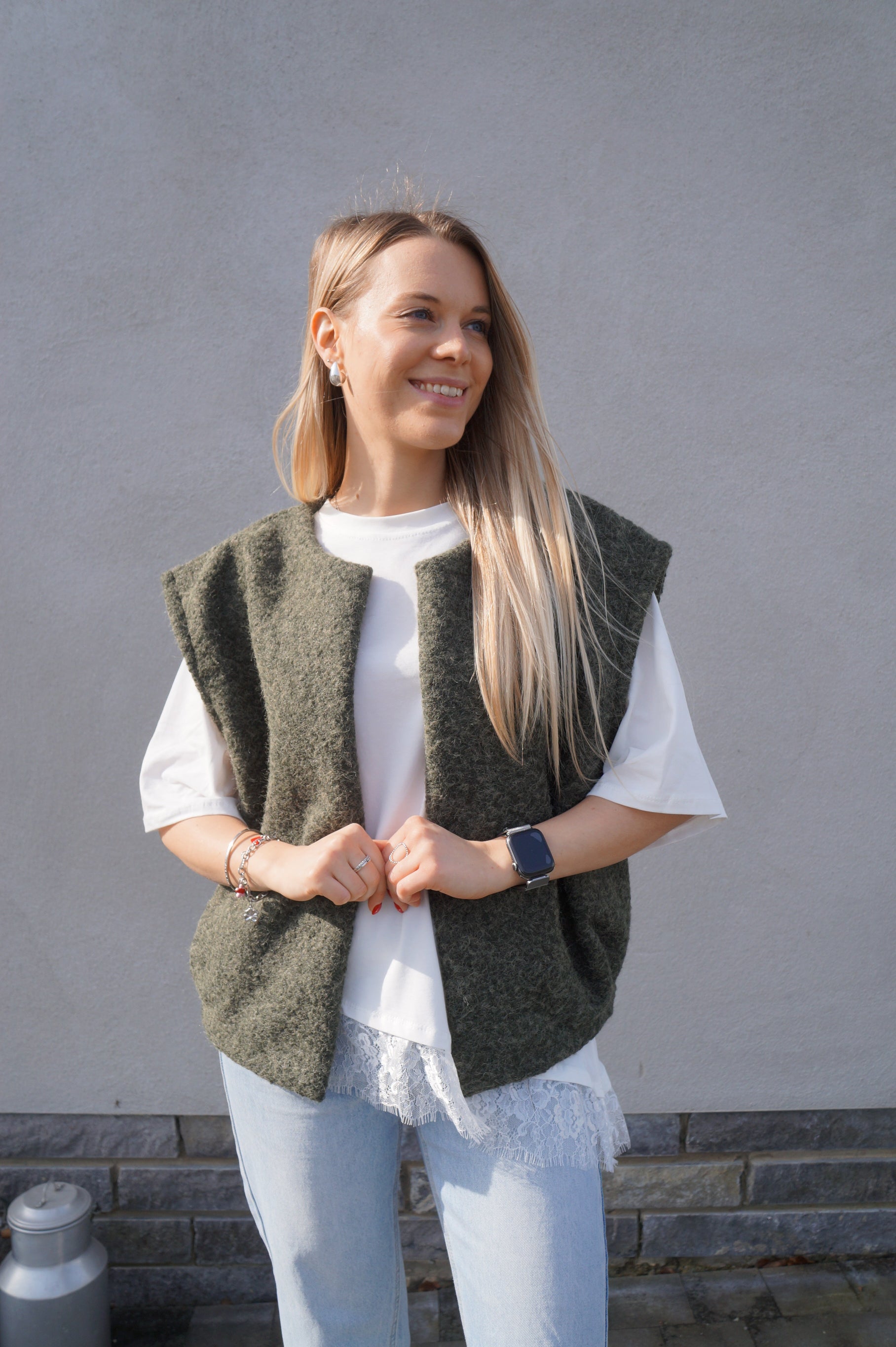 - Le modèle mesure 1m65 et porte également notre Jean Victoire ainsi que notre gilet Avril